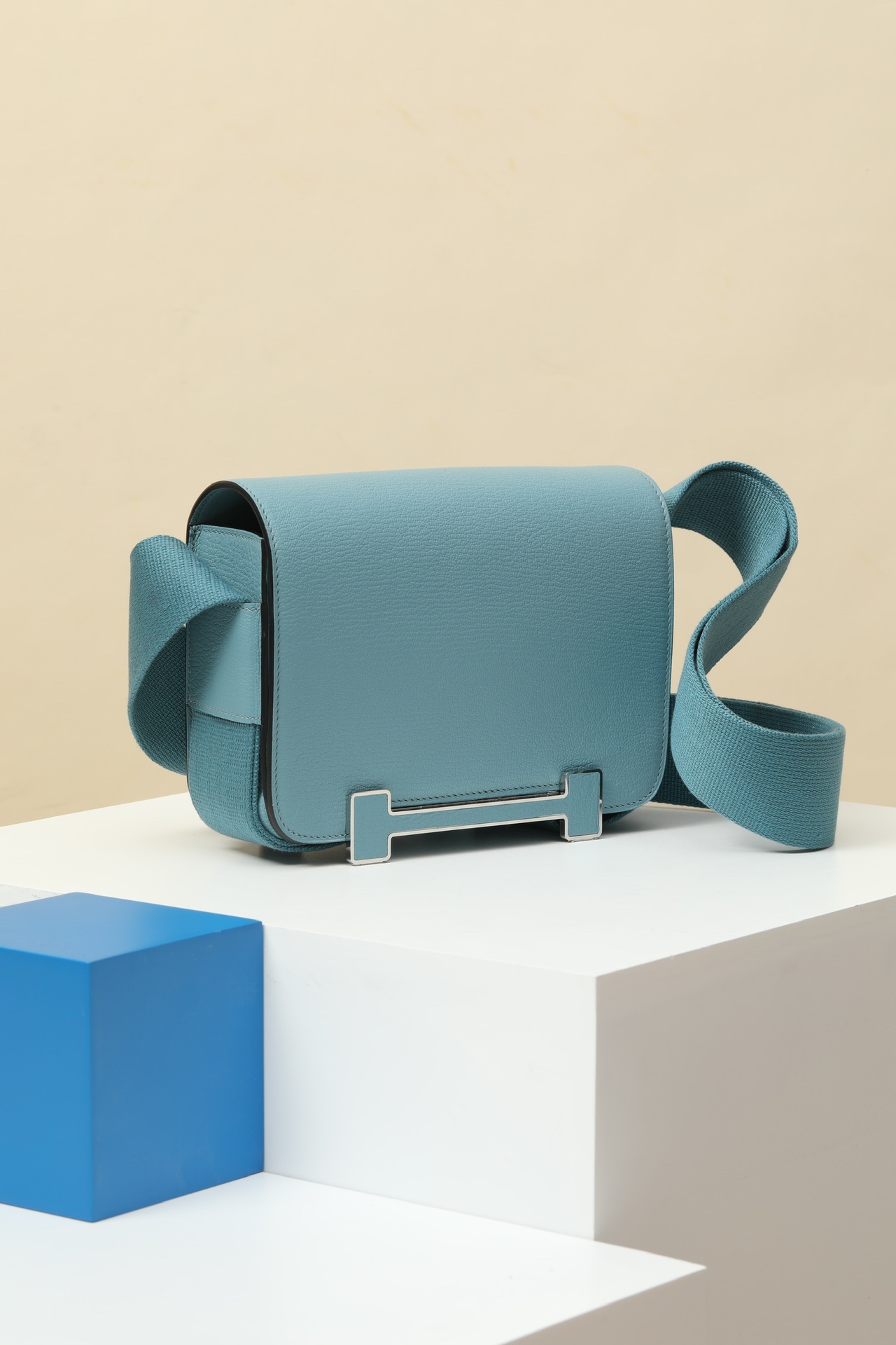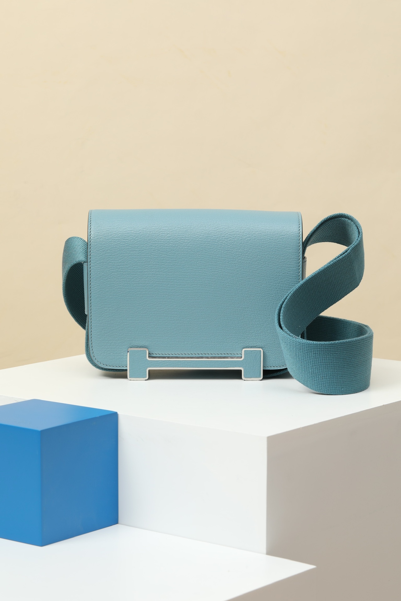 Hermès Evelyn TOGO mini phone bag Linen blue 336 size: 18*12.5*4cm